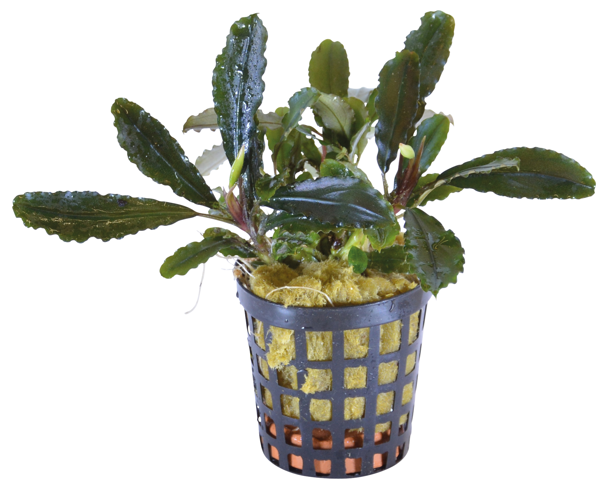 "Lamandau" is a rare, attractive Bucephalandra form from the Lamandau region in southwestern Borneo. It is not yet determined to species. Our plants are not collected in the nature but propagated in nurseries and tissue culture. "Lamandau Mini Red" develops densely ramified rhizomes and has a low, bushy habit. The leaves are short stalked, elongate-obovate with wavy margin. They get about 3.5 cm long and 1 cm wide. Especially the young leaves show nice red-brown tones; older leaves are dark green. The plant regularly develops pretty inflorescences. As well as other Bucephalandras, "Lamandau Mini Red" is best placed on the hardscape (rock or driftwood) where it will attach itself by its roots. The growth is very slow. Medium light intensity, good CO2 and nutrient supply and water current contribute to a vital appearance of the plant. It is easily propagated by cuttings of the main and side shoots. It can also be fastened to the ground, but the rhizome should not be buried in order to prevent rotting of the rhizome.