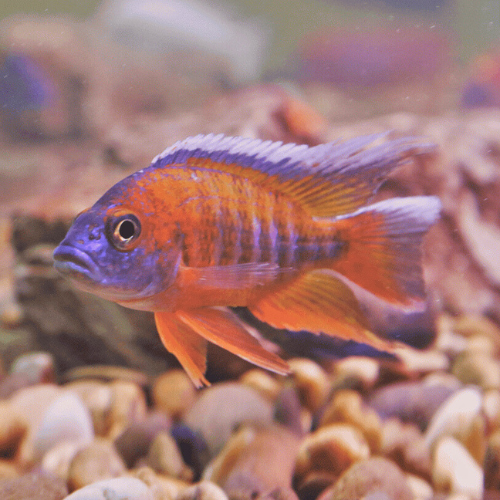 The Aulonocara jacobfreibergi, commonly known as the Eureka Red Peacock Cichlid, is a visually impressive, moderately aggressive species endemic to Lake Malawi. Males exhibit spectacular red and blue chromatic patterns, contrasting with the subdued appearance of females. This species demonstrates reasonable adaptability in captivity, though requires appropriate spatial accommodation, precise water chemistry, and lithic substrate formations to replicate their natural habitat.