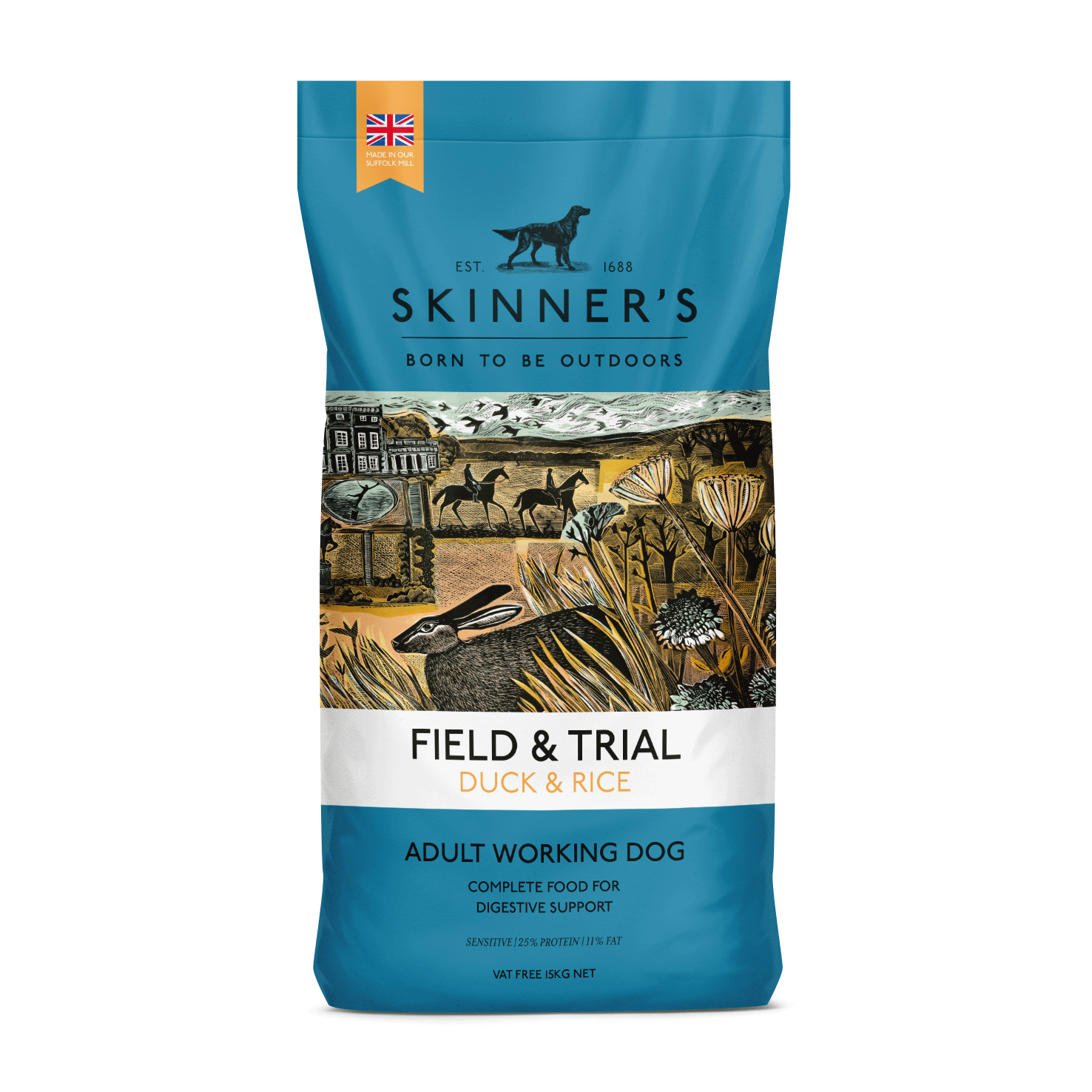 Made with British duck meat meal, rice and naked oats, Field & Trial Duck & Rice also contains all the essential vitamins, minerals and carbohydrates needed for health, vitality and sustained stamina. As a valuable source of energy and to maintain healthy coat condition, Field & Trial Duck & Rice is also coated in sunflower oil.