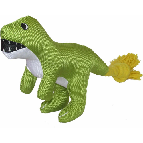 Super strong for tuggy fun. Durable canvas material with full length rope and squeaker